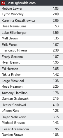 | Robbie Lawler | 67% | Tyron Woodley | 34% |